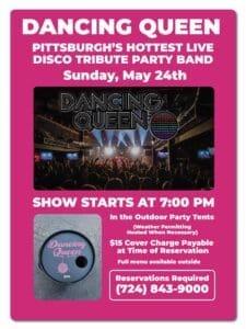 Call 724-843-9000 to reserve seating. Come early for dinner!